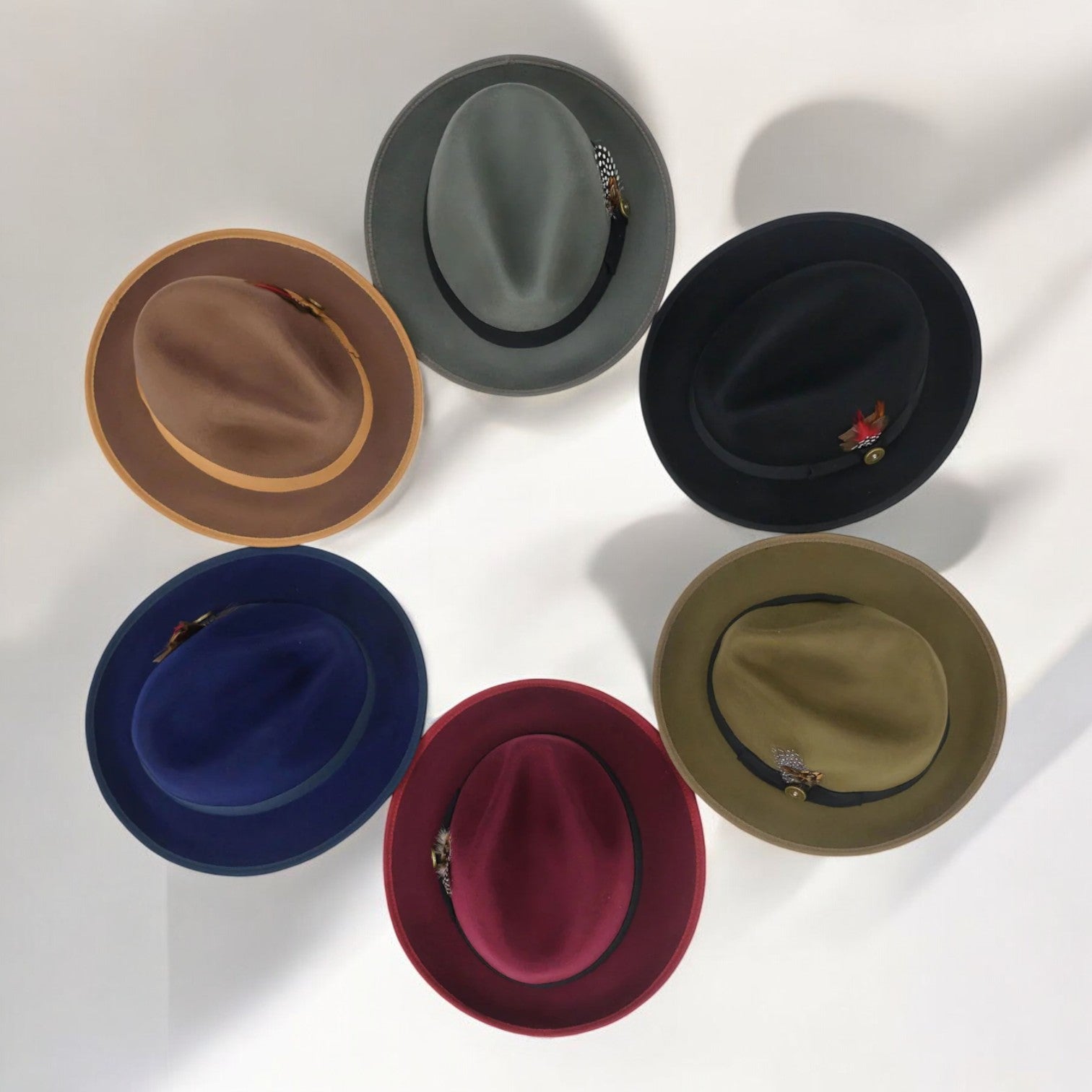 The Bikary Wool Felt Fedora in brown adds a warm, earthy tone to the classic fedora silhouette. Featuring a pinched crown and medium brim, it brings a refined yet rugged charm that pairs effortlessly with both casual and polished outfits. Crafted from high-quality wool felt, this hat is lightweight, durable, and comfortable for year-round wear. Ideal for everyday style, outdoor adventures, or adding a touch of timeless sophistication to your look.