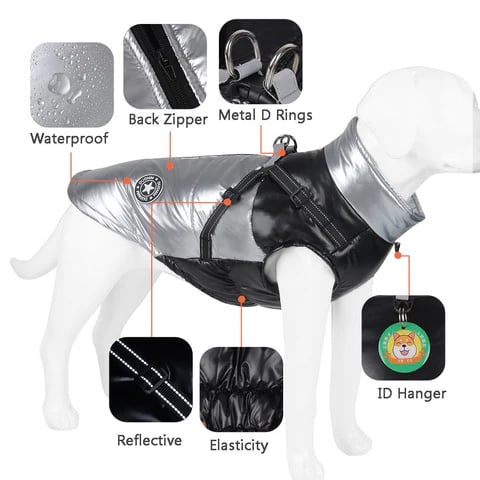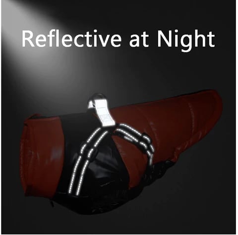 KEEP YOUR DOG SAFE FROM TRAFFICĀ - Fall and winter nights often mean youāll beĀ walking in the dark.Ā The Dog's Winter Jacket has highly reflective threadĀ in the harness that addsĀ extreme visibilityĀ when shone on by a headlight.Ā Your dog will be obvious toĀ oncoming motorists, adding an element ofĀ safety to your night walks.Ā