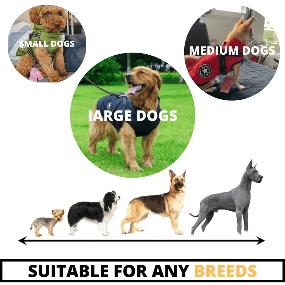 Our jacket features thick waterproof and windproof fabric that keeps your pup warm and dry so that you can enjoy the outdoors together for longer under any conditions knowing that your dog is both safe and comfy.